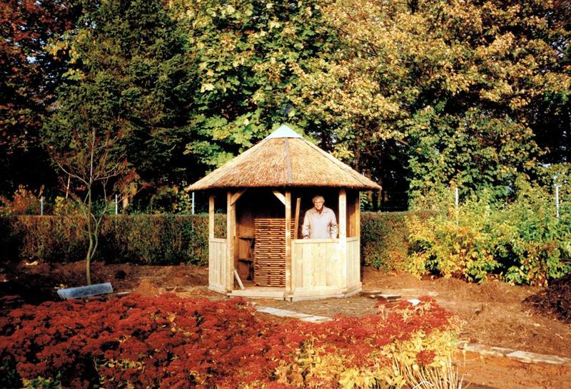 Het door de Reuverse gemeenschap geschonken prieeltje bij gelegenheid van het 100-jarig bestaan van het H.Hart-klooster. In het prieeltje staat zuster Mechtilde.