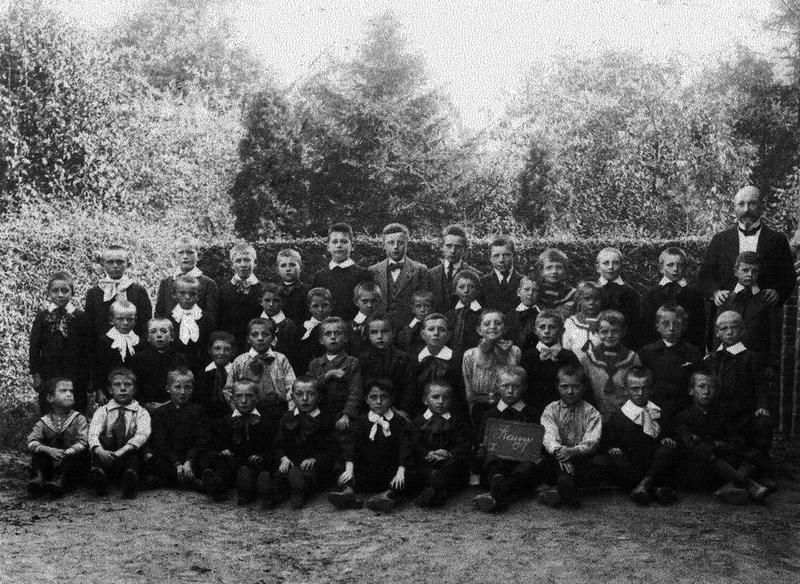 Klassenfoto (onbekende klas) met het hoofd van de openbare jongensschool Ludovicus Wolfs (hoofd van de school van 1884 tot 1926)