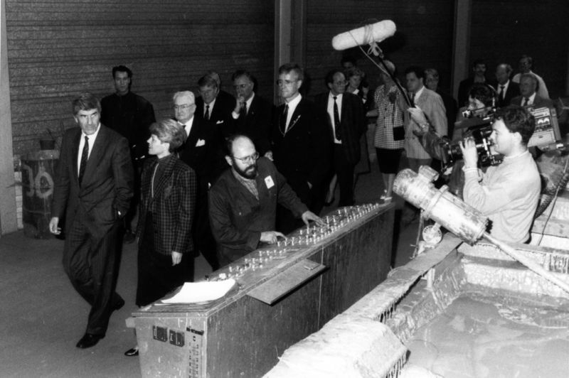 Premier Ruud Lubbers krijgt een rondleiding door de fabriek van