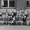 Klassenfoto van de St.Lambertusschool uit 1959 met rechts juffrouw Sybilla Tilmanns-Wessel.