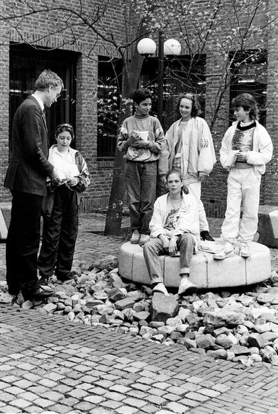 De jeugd van de Leewerveldschool vraagt burgemeester Nuytens om bescherming van de oude bomen.
