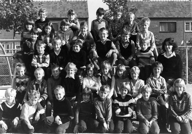 Klassenfoto van een schoolklas van de St. Jozefschool/basisschool Offenbeek met juffrouw Boers.