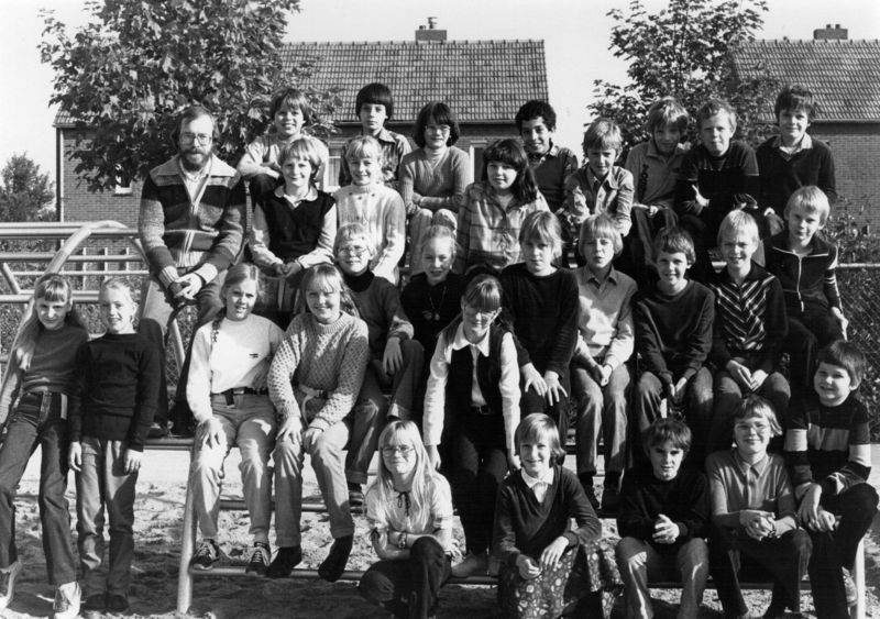 Klassenfoto van een schoolklas van de St. Jozefschool/basisschool Offenbeek met leraar Gerard v.d. Munnikhof.