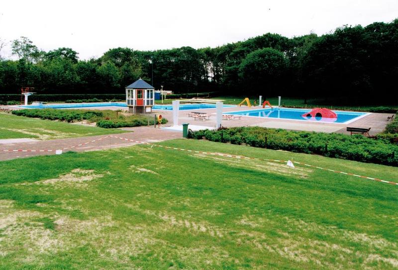 Het liggedeelte van het gerenoveerde zwembad "de Bercken" is voorzien van een nieuwe grasmat.
