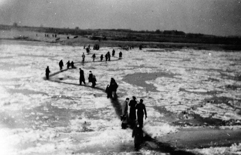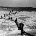 In de strenge winter van 1954 was de Maas dichtgevroren en kon men van Reuver naar Kessel oversteken over het ijs.