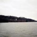 Hoogwater van de Maas met zicht op het kruis opgesteld door Derksen een zeer gelovig en conservatieve katholiek.