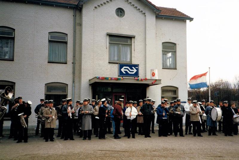 De harmonie en trommel- en fluiterkorps "St. Barbara" wachten op de komst van Sint Nicolaas