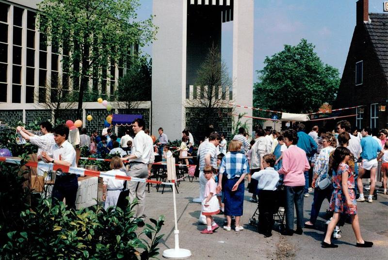 Oranjefeesten vóór de Fatimakerk in Offenbeek.