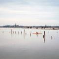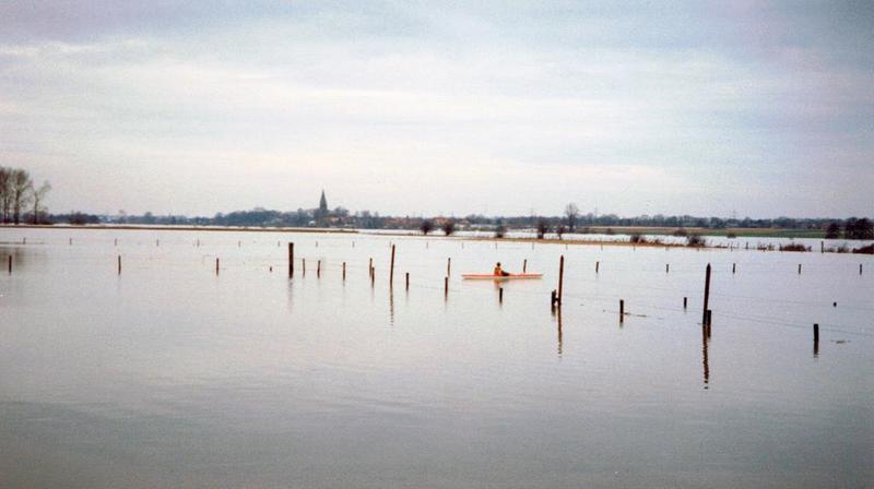 Hoog water van de Maas gezien vanaf de Maasstraat richting Kessel.