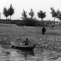 Laag water van de Maas nabij het veer. Links is nog een oude veerstoep te zien.