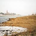 De stuwen in de Maas waren in de winter vanwege ijsgang gestreken en daardoor hadden we een zeer lage waterstand. De foto is genomen nabij het veer.