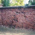 Duidelijk zijn hier de sporen te zien van granaatinslagen in de muren van het oude kerkhof.