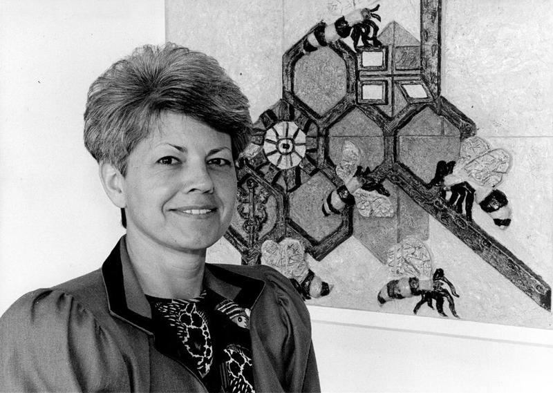 Bertha Hovers-van Lierop, zakenvrouw van het jaar 1988, bij haar afscheid van de gemeenteraad. Zij nam haar beslissing om te stoppen omdat zij het te druk had met haar werk als directeur van HOVUMA-magazijnstellingen in Reuver.