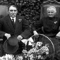 Een foto van het echtpaar W. Augustus en Mieke Augustus-Vossen bij hun gouden bruiloft in 1920. Het gouden paar zit op stoelen die geschonken zijn door de buurt De Klok.