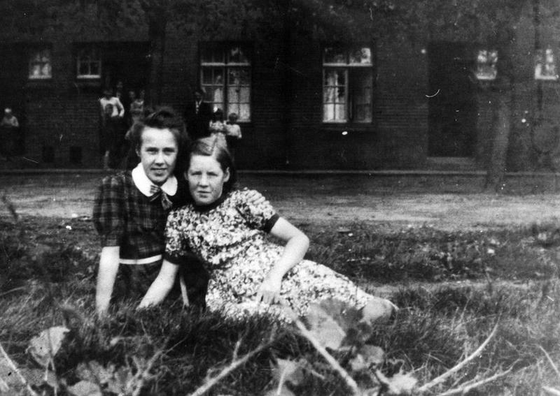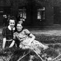 Nel Wanten (rechts) poseert met een vriendin. Op de achtergrond de Tien Geboden.