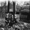 Pia-Mea en Pierre, kinderen van Sjeng Rijnders (broer van juffr. Nel Rijnders), die getrouwd was met An Spreeuwenberg, in de voortuin van Willem Rijnders nabij de pastorie.
