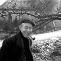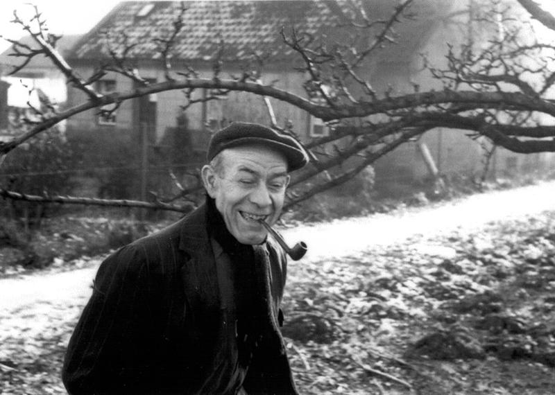 Pierre Schoolmeesters met zijn onafscheidelijke pijp vóór zijn huis aan de Keulseweg. Pierre was een zoon van Gerardus Schoolmeesters en Anna Janssen.