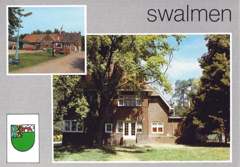 Een prentbriefkaart van gebouwen in Swalmen - Asselt. Op de foto staan het gebouw Groenewoud en de woning bij camping Maasterras in Asselt