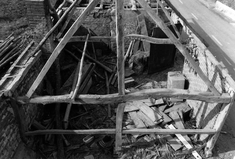 Afbraak van de schuur van het vakwerkhuis van Sanders in Boukoul.