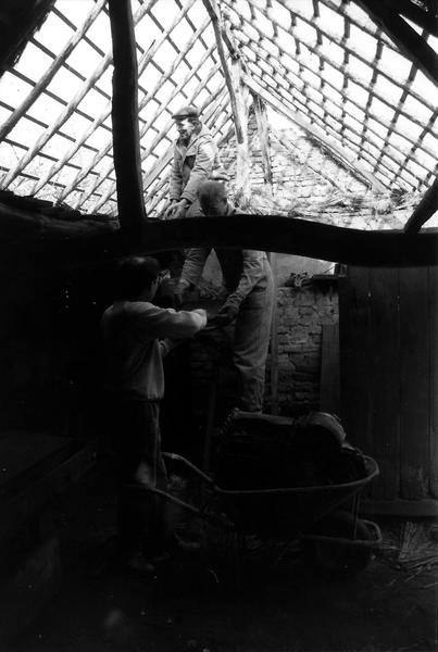 Afbraak van de schuur van het vakwerkhuis van Sanders in Boukoul.
