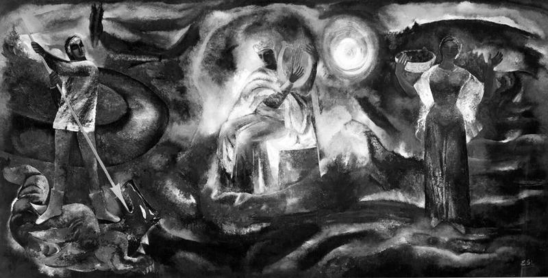 Het schilderij van Ella Sliedrecht vervaardigd in 1965 voor de gemeente Beesel-Reuver.