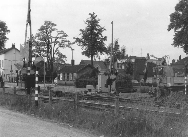 Aanleg van de nieuwe spoorwegovergang aan de Broeklaan nabij het station (gezien vanaf de Broeklaan).