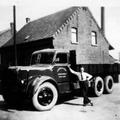 Harie Dewinden vóór een van zijn vrachtwagens .
