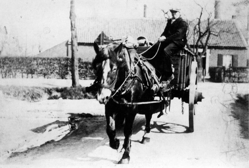 Harie Dewinden transporteert de gresbuizen van Janssen-Willemsen met paard en kar.