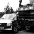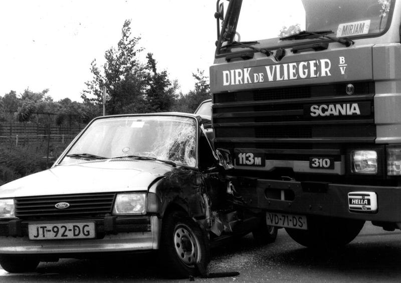 Een vrachtwagen van Dirk de Vlieger botst met een personenauto.