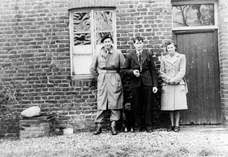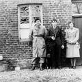 Vóór hoeve De Kamp staan van links naar rechts: Rob Jager (uit den Haag), Jan en Tonia Franssen.