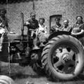 Op de tractor bij hoeve de Kamp. Achter het stuur Coen Vaessen, links van de Coen zit Jan Franssen