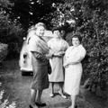 Drie dames op de oprit van hoeve De Kamp. Links Louisa Franssen - Sanders.
