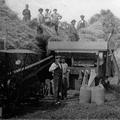 Er was nogal wat mankracht nodig bij het dorsen van de oogst zoals de foto uit de dertiger jaren van de 20ste eeuw laat zien. Bij de dorskast staan onder andere: