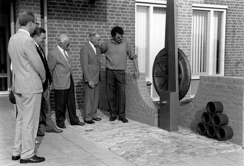 Ton Simons (rechts) een bekend kunstenaar uit Reuver heeft alle eer van zijn werk want het object van zijn hand, dat het aanzicht van "Biëj de Breer" alleszins verfraaid is werkelijk de moeite waard.