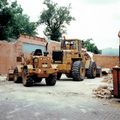 Bulldozers bezig met het opruimen van de drukkerij van Tim.