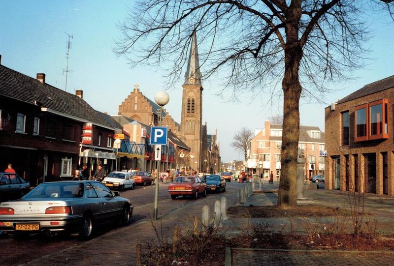 De Pastoor Vranckenlaan met (bij het publiek) de net geopende nieuwe Edah-supermarkt.