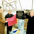 De gedenksteen bij het appartementencomplex "Het Vloot" word onthuld door de heren Dré Theeuwen, Wiel Litjens (wethouder) en Martien v.d. Munckhof. Dré en Martin waren van de directie en Raad van Bestuur van Coörporatie Woongoed.