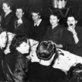 Links Jo Gommans. Rechts in het midden Maria van Gassel - Goossens. Links van haar mevr. Nelly Janssen (café aan de kerk)
