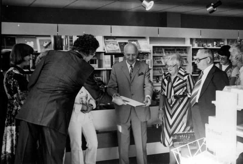 Bij de opening van de gemoderniseerde boekhandel "Tim" biedt Huub Timmermans zijn vader een herinneringsalbum aan.