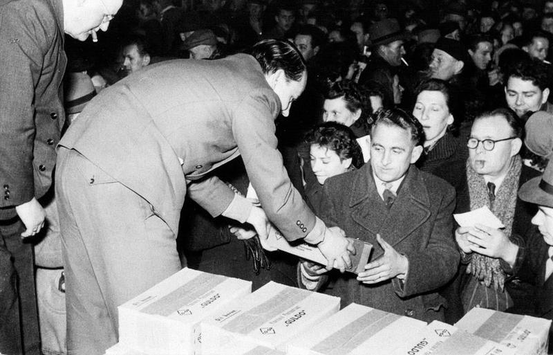 Het bestuur van Coöperatie "Ons Belang" deelt gratis feestpakketten uit bij de gelegenheid van het 40 jarig jubileum in zaal Paar.