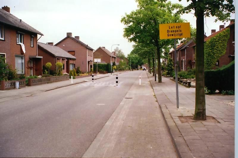 Op de Industriestraat in Offenbeek werden obstakels geplaatst om het verkeer af te remmen.