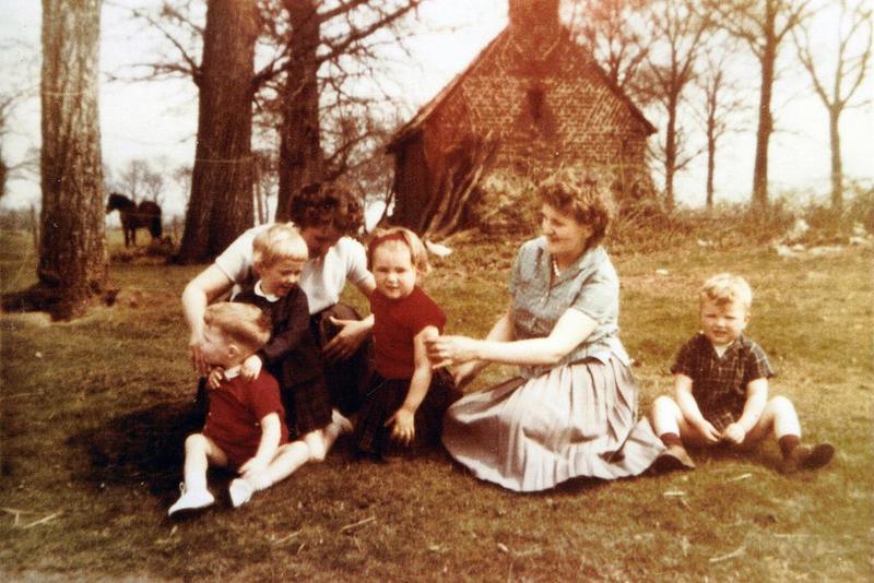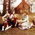 Henk Zegers met echtgenote en kinderen nabij het bakhuisje van boerderij "Klaashof"