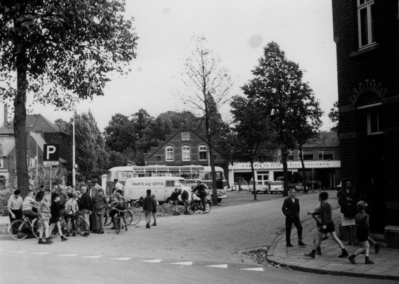 De markt wordt gemoderniseerd in 1963. Rechts op de hoek de woning van de familie Julicher (tabakszaak in die tijd).