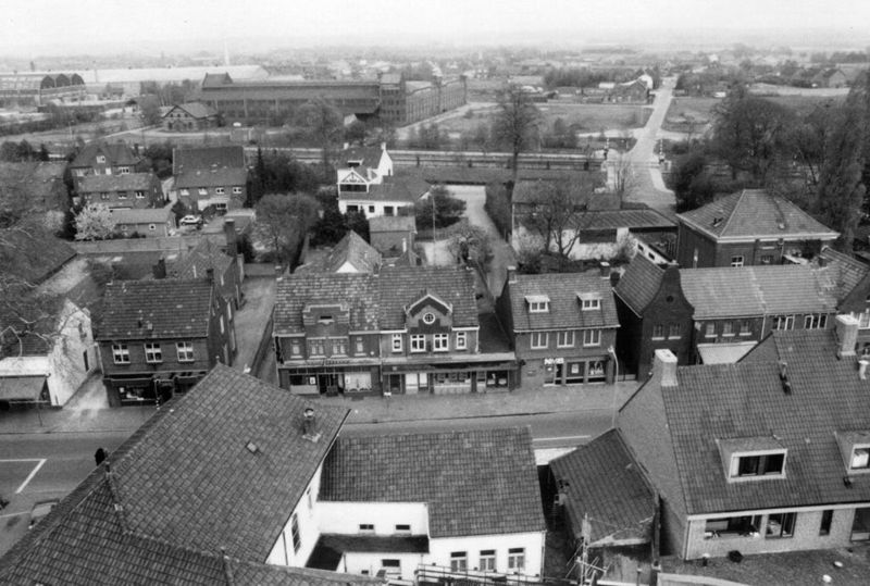 Het centrum van Reuver en op de achtergrond de Broeklaan en de fabriek van Janssen - Willemsen.
