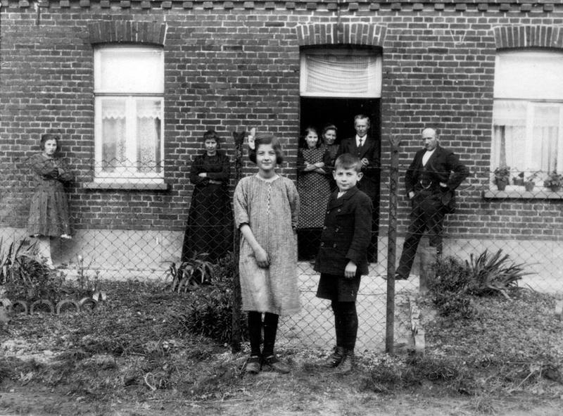 Geheel rechts Graat Wijnands, links in de deur opening zijn vrouw Neske Peeters. Geheel links Leen Wijnands. Op de voorgrond Wim en Marie Wijnands en in de deur opening Cor Wijnands.