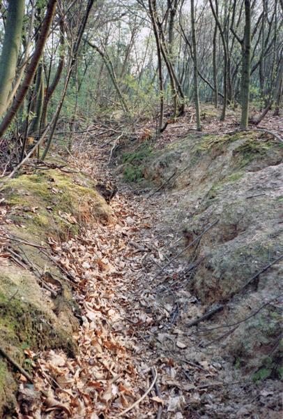 Een loopgraaf even ten zuiden van boerderij "De Weerd" in de Berken. Eind 1944 gegraven in "de Sjanstijd".