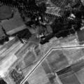 Een luchtfoto gemaakt door een geallieerd verkenningsvliegtuig in het najaar van 1944. Het is het gebied tussen de Maas, hoeve "De Kamp (rechts) en de St. Lambertuskapel (links). Duidelijk is de verdedigingslinie te zien met de zogenaamde tankgracht en de loopgraven.