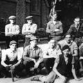 Op de foto de personen, die het skelet van de toren opnieuw vorm moesten geven. Staande: Sjang Schattorië (dakdekker), Jeu Janssen (timmerman), Lei Peeters (timmerman), Hendrik Peters, Willem Nottelman, Ton Schattorië. Knielend: Sjeng Lennaerts, Thei Vullers, Harrie Willemsen, Jan Heinen, Jan Schattorië, Jeu Janssen en op voorgrond Lei Schattorië. Timmerlui en dakdekkers.