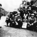 Samen met de Amerikaanse militairen van de 35e verkenningsgroep werd de Offenbeekse jeugd, gezeten op een lichte tank, vereeuwigd. Op de foto staat onder andere: Frits en Jeu Verstappen, Mat van Lier, Piet Killaars.