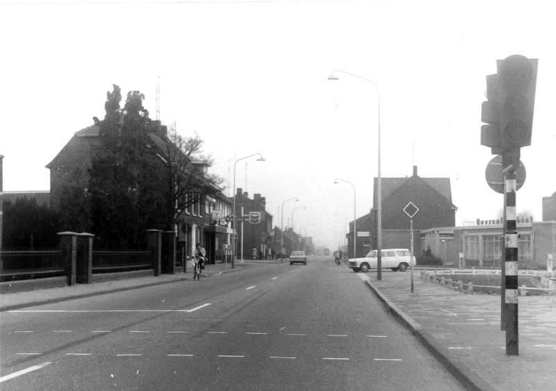 De Rijksweg met links de woning van v.d. Avoort en rechts de Boerenleenbank.